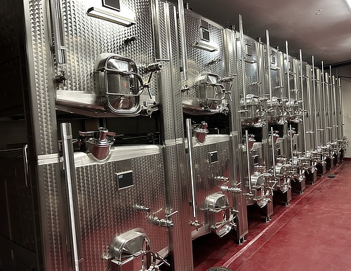 Cave de Sézenove à Bernex. 9 cuves SSP de 2000 à 2500 litres.