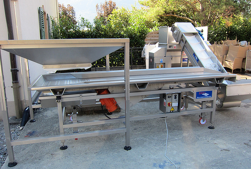 Cave Petite Vertu à Chamoson. Table de tri vibrante CMA et égrappoir Lugana 1.